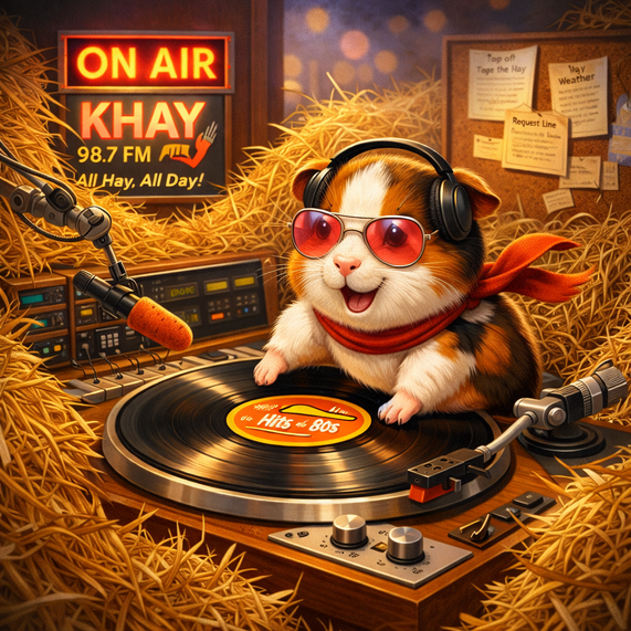 Spinning the phreshest and phattist records, the crunchiest grooves, and absolute wheekin' classics, KHAY brings you wall-to-wall hay-inspired hits with absolutely no dead air โ only dried grass, and deep third cuts of the finest Timothy!