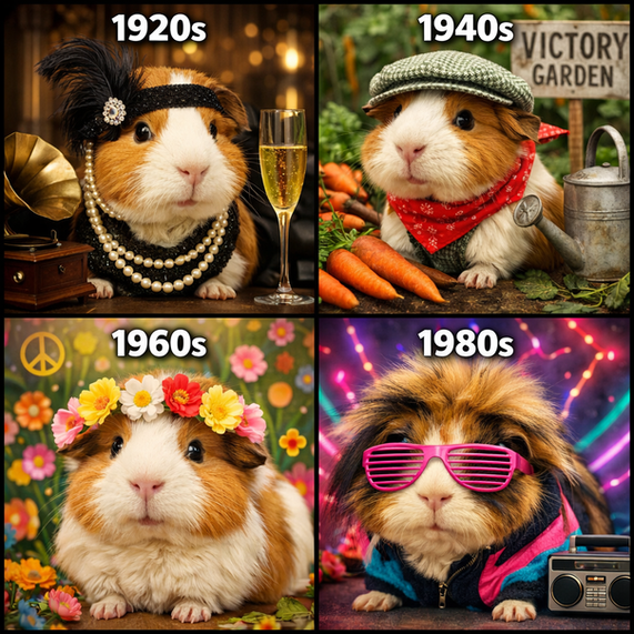 Take yourself and your piggy on a vintage mental time travel break, but where would you go? And do you have the right accessories to outfit your piggy so they don't stand out from the herd?